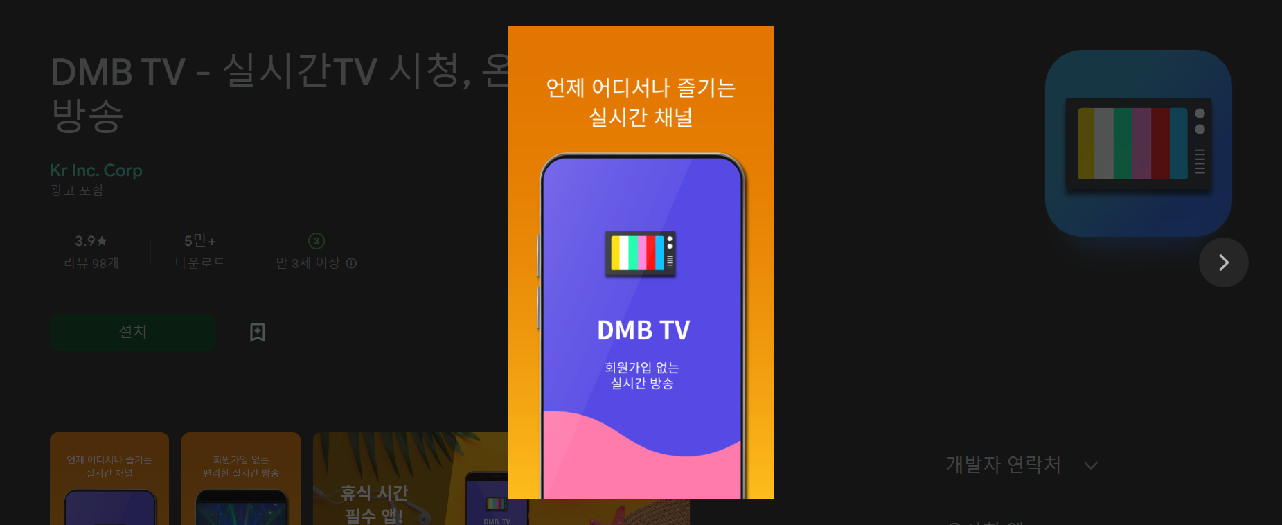 1. DMB TV 앱을 설치하고 실행한다.